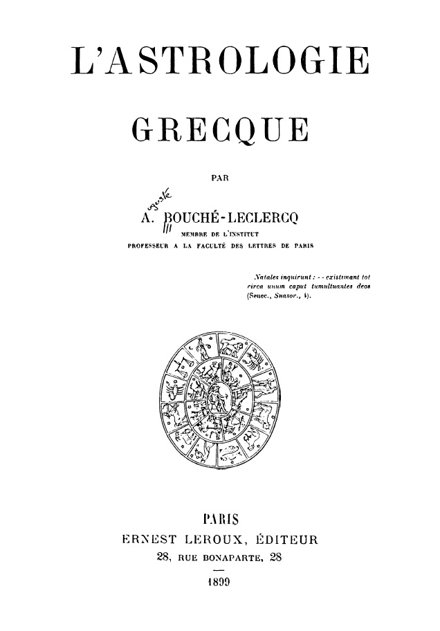 Bouché Leclercq sera (surement à son grand dam) un des initiateurs du renouveau de l’astrologie en France au même titre que d’autres ouvrages plus pédagogiques et surtout plus modernes comme: